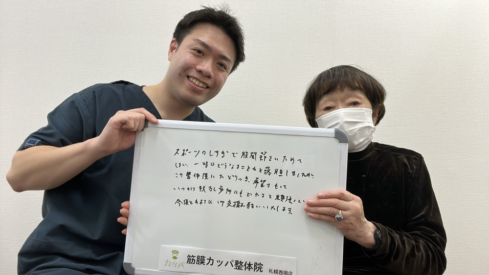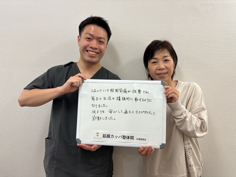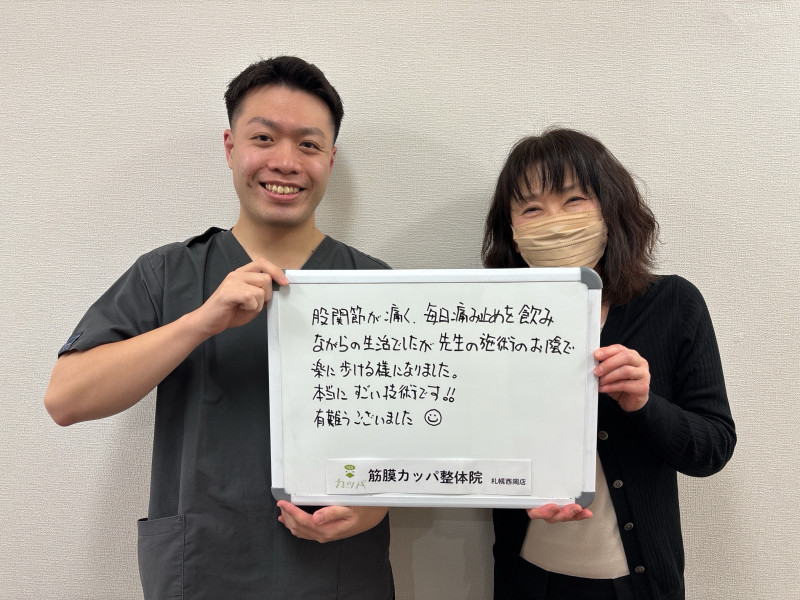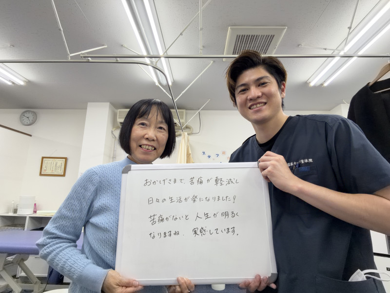 「痛みが軽くなり、日々の生活が楽になりました。ありがとうございます!」