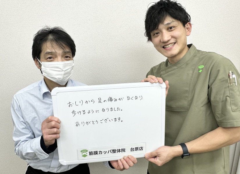 「太ももの痛みと足の痺れがあり、辛かったですが、改善されてとても楽になりました!」